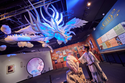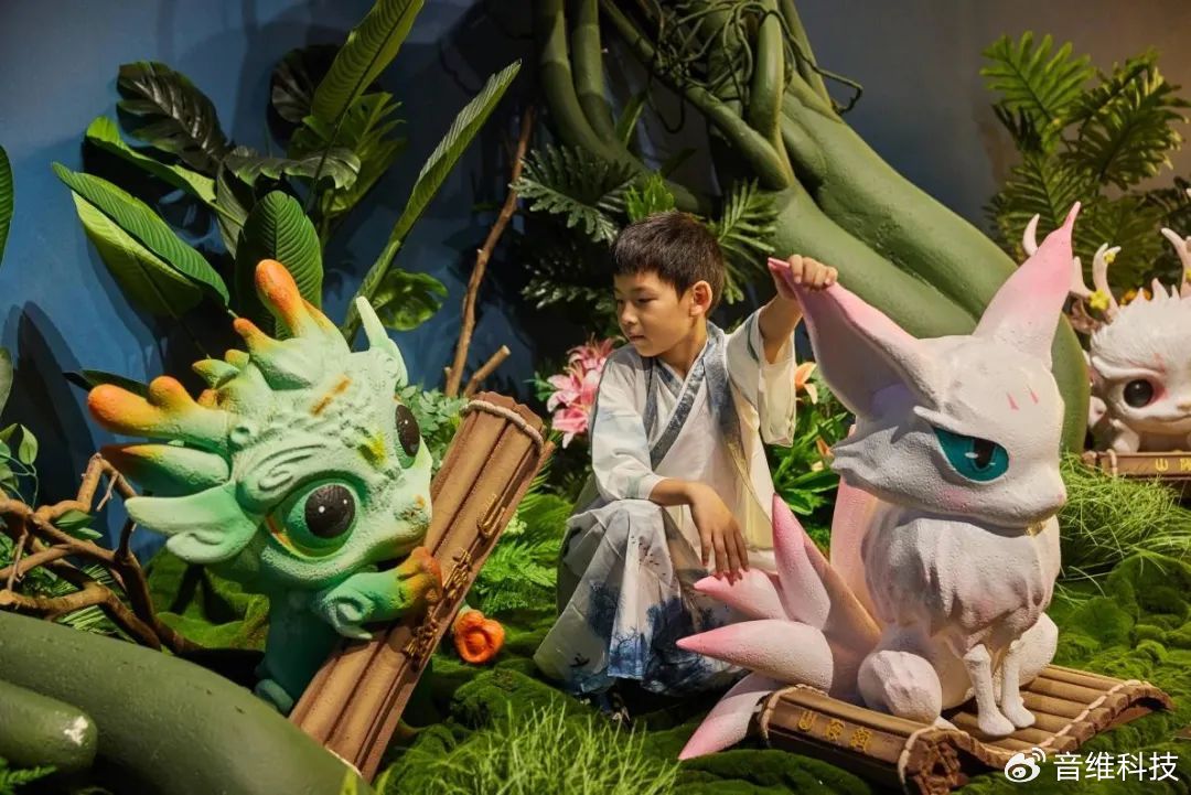 展覽共規劃十大互動區域,在內容上,涵蓋山海經歷史、神話故事、神奇植物、神怪異獸、后世影響以及現實應用等方面,在互動上,涵蓋漢服體驗、裝置藝術、美陳打卡、新媒體光影、AI繪畫、體感互動等多種形式。讓到場游客全方位、多元化、沉浸式體驗山海經文化。
