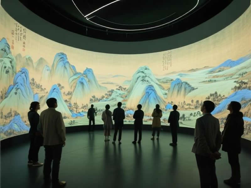 推開展廳大門的瞬間,你突然被卷入了時空漩渦——腳下踩著宋代《千里江山圖》的粼粼波光,頭頂懸著漢代青銅器紋樣流轉的星河,四面墻面上,活字印刷的字塊正隨著你的呼吸起伏跳動。這不是科幻電影的開場,而是沉浸式激光投影技術為現代展廳披上的"時空戰衣",讓每個參觀者都獲得了"歷史穿梭者"的臨時簽證。