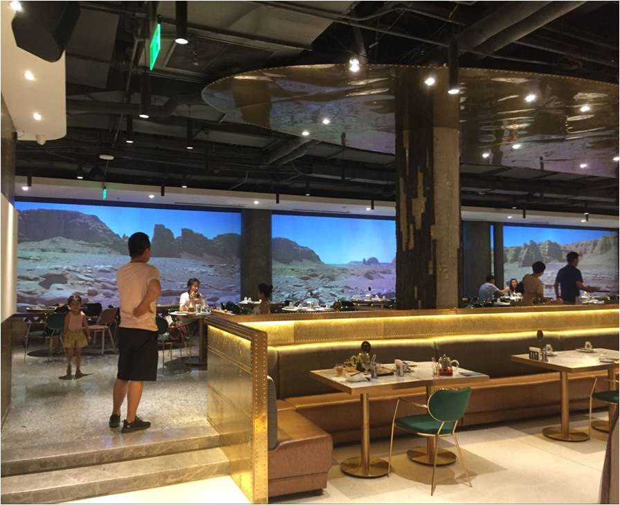 Products Classification簡(jiǎn)要描述:新疆烏魯木齊光影餐廳絲路有約餐廳項(xiàng)目使用N臺(tái)激光投影機(jī),充分利用機(jī)器內(nèi)置融合功能,實(shí)現(xiàn)大屏融合,在餐廳四周的墻面上進(jìn)行投影,播放有關(guān)“絲綢之路”的片源,巧妙的與“絲路有約”名字相呼應(yīng),營(yíng)造沉浸式餐廳的氛圍,與“絲綢之路”相約。...