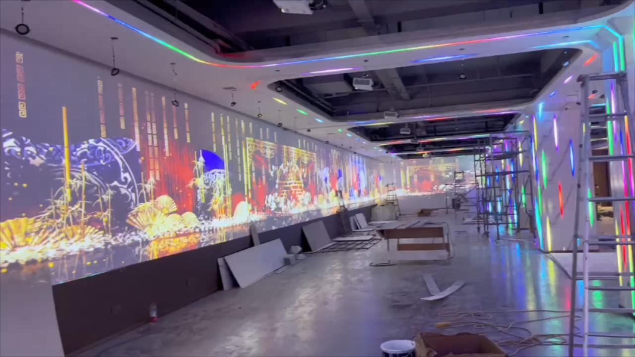 其次,音維科技將根據宴會廳的主題和氛圍,調換精美的畫面素材。通過融視盒子對13個墻體畫面做視頻融合處理,并對畫面比例、色彩搭配、內容選擇等方面的精心策劃,使得投影畫面與宴會廳的環境相得益彰,營造出更加絢麗多彩的氛圍。無論是瑰麗的自然風光、浪漫的場景還是激揚的動態影像,都能讓賓客沉浸在光影交錯的美妙氛圍中。