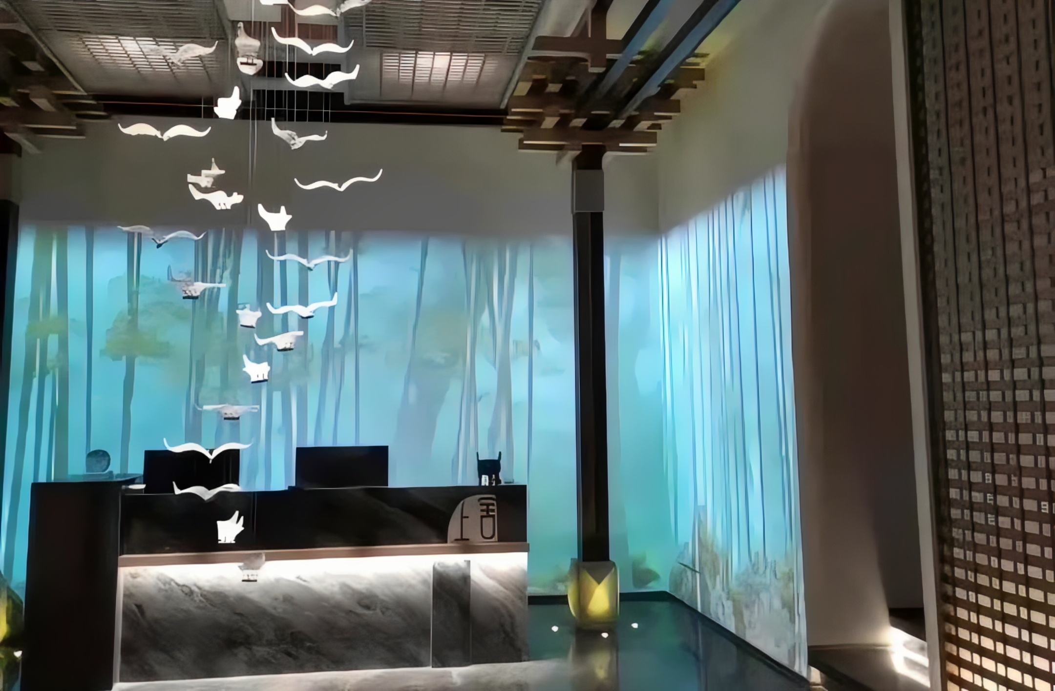 我們在考慮了現場的環境、投影的距離,決定采用四臺4500流明的超短焦的激光投影機,并配合上純硬件的融合器,很好的達到該店鋪的要求。
