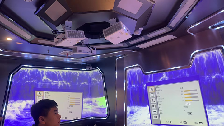 Products Classification近期,音維公司前往江蘇昆山千燈鎮,所打造的KTV投影融合系統是將3D圖像內容投射在KTV包廂內,在亦真亦幻的虛擬場景通過圖像融合系統,打造出沉浸式的光影互動體驗。