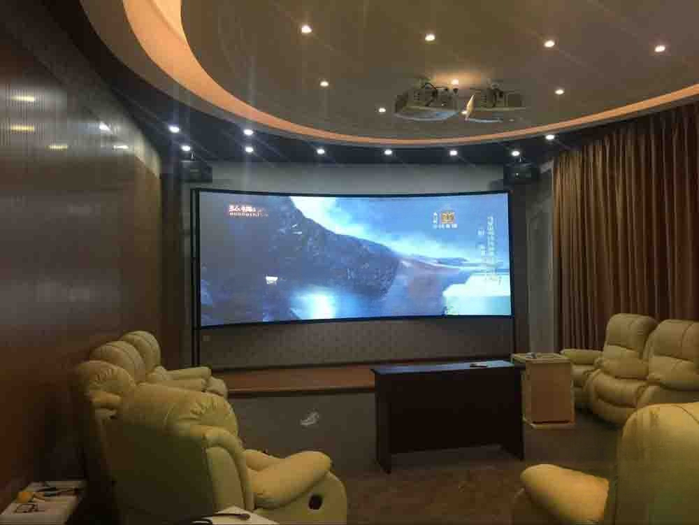 Products Classification簡要描述:漢中某農(nóng)業(yè)生態(tài)公司想在會(huì)議室的一面打造了弧形融合大屏畫面可在這面屏幕播放ppt等素材,提升會(huì)議的效率。該項(xiàng)目用了兩臺(tái)投影機(jī)采用吊頂?shù)姆绞綄嬅娲蛟诮饘倌簧希ㄟ^內(nèi)置融合將畫面無縫拼接在一起。打造了多功能會(huì)議室的一個(gè)弧面融合大屏,且有環(huán)繞立體音效,開會(huì)之余也可一觀影休閑。...