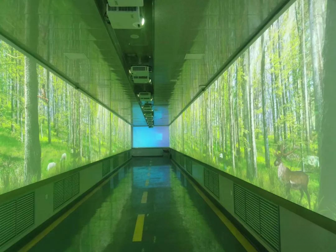以上如此酷炫多變的展廳投影,是上海音維科技為內(nèi)蒙古某礦場展廳做的室內(nèi)投影。我們根據(jù)園區(qū)內(nèi)的布局以及環(huán)境以及考慮到室外天氣等不確定因素,這次我們用了29臺迪恒KU570激光高清投影機(jī)打造,該激光高清投影機(jī)擁有5700lm高亮度,即使是在如此空曠、面積較大的場地,畫面依舊清晰亮麗。色彩區(qū)域達(dá)到REC.709色域標(biāo)準(zhǔn),色彩鮮艷真實,超高對比度使得畫面更通透細(xì)膩,景深豐富,無論是浩瀚宇宙還是繽紛花海都能完美呈現(xiàn)。為用戶帶來無與倫比的虛擬影像,將世界萬象盡收眼底,觀看效果更真實生動。