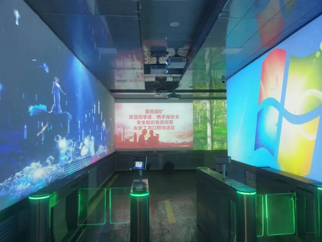 結(jié)合園區(qū)內(nèi)的空間設(shè)計元素,上海音維科技團(tuán)隊,在兩邊的走廊區(qū)域提供多媒體視覺技術(shù)支持,采用兩面墻投影等方式,讓在此參觀、了解礦場文化的客人身臨其境置身于科技感十足的空間,感受3D環(huán)繞場景營造下的極致氛圍!結(jié)合整個空間設(shè)計元素,上海音維科技團(tuán)隊利用3D全息投影打造出富有科技感、立體效果超強(qiáng)的生動場景。加上現(xiàn)場的燈光和音樂的渲染烘托給人強(qiáng)烈的視覺和聽覺沖擊,異常別開生面的超值體驗拉開序幕!接下來,跟隨小編提前感受一下現(xiàn)場氛圍吧!